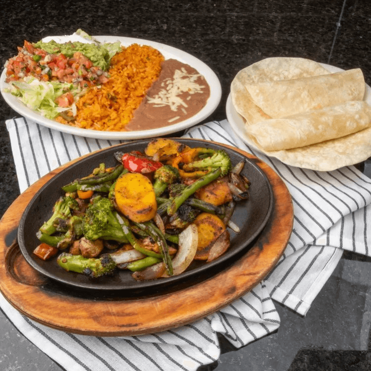 Mix of fresh seasonal vegetables cooked on the grill with our house seasoning, served with rice, beans, lettuce, pico de gallo, guacamole, sour cream and flour tortillas
