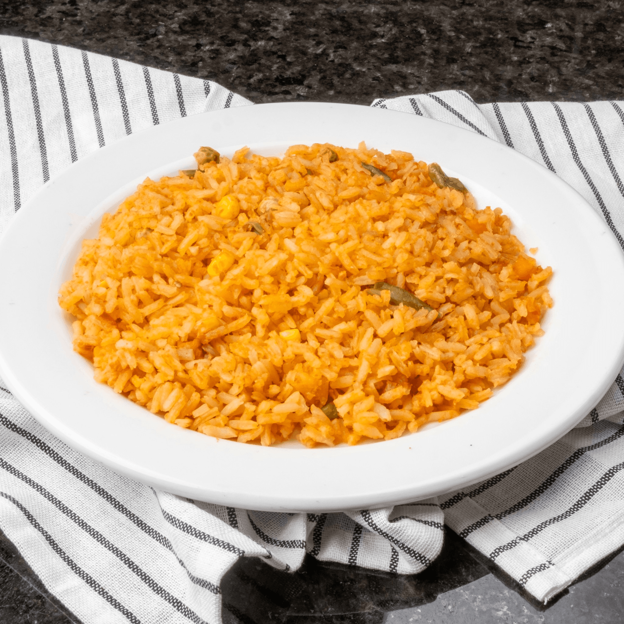 Cubed steak simmered in a red salsa cooked with onions and bell peppers. Served with a side of rice, beans and guacamole salad